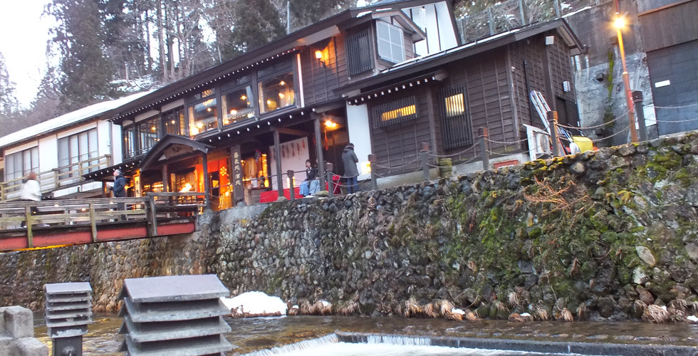 If you are not able to get a night at one of the ryokans on the river front, you are still able to check out a few of the public onsens, which is what I did. There is also public foot baths to have your feet warmed by the natural water.
