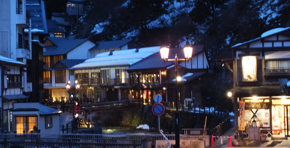 Ginzan Onsen literally means Silver Mountain Hotsprings, and it is famous for it's plethora of ryokans and onsens lining the river, flowing from the large waterfall at the back of the village area. It is well over 400 years old, having been a booming silver mining town before the mine collapsed and it converted over to being a onsen getaway.
